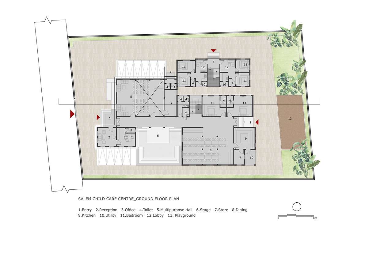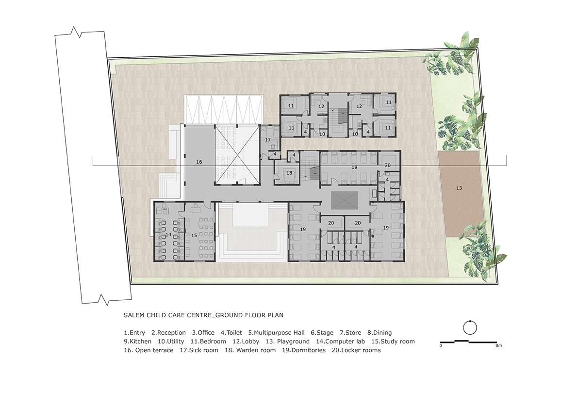 Salem childcare centre is established as a part of childcare service by SALEM SOCIAL SERVICE SOCIETY. This two floor structure is built to shelter around 120 children. The building includes dormitories, gatherings halls, dining room, computer and activity labs and also housing quarters for the staff. The compound also holds a playground and a green lawn for the children to rejoice in.